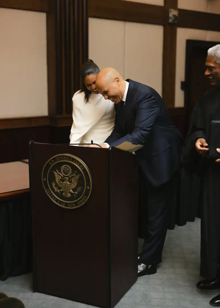 The couple confirmed that they were formally married on November 24 in a small courthouse ceremony in Newark, New Jersey, a city long intertwined with Cory Booker’s political and personal life. The legal ceremony took place at the United States District Court for the District of New Jersey, with a judge presidingJulien Xavier Nealswith their parents as witnesses. After the vows, the newlyweds marked the moment the way many modern couples do: with dessert. Italian pastries and a vegan chocolate chip cookie dough cake paid tribute not only to holiday traditions, but also to Cory Booker’s famous vegan lifestyle.