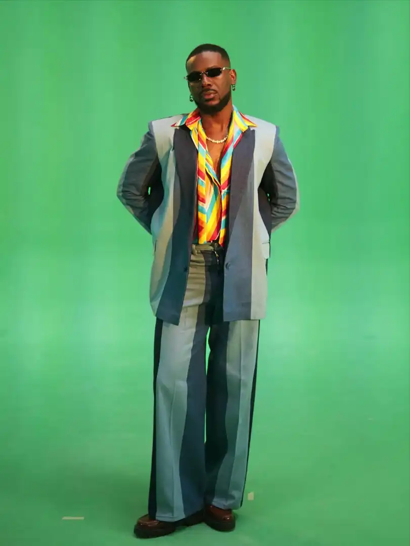 In the meantime,Adekunle Goldleaned fully into retro-cool nostalgia in his “Many People” music video, appearing in a visually appealing Lisa Folawiyo patchwork suit. Made from multi-wash denim panels, the design created bold vertical lines that elongated its silhouette and put texture front and center. Additionally, an open, multi-colored striped shirt provided fluidity and movement, providing a vibrant counterpoint beneath the structured denim. Finished off with dark sunglasses, a pearl necklace and chunky brown shoes, the outfit struck a perfect balance between edginess and elegance.