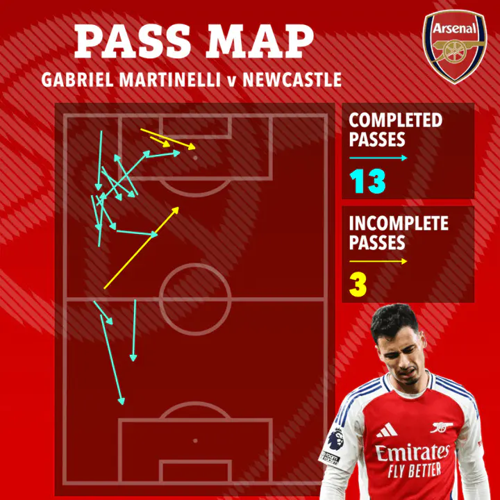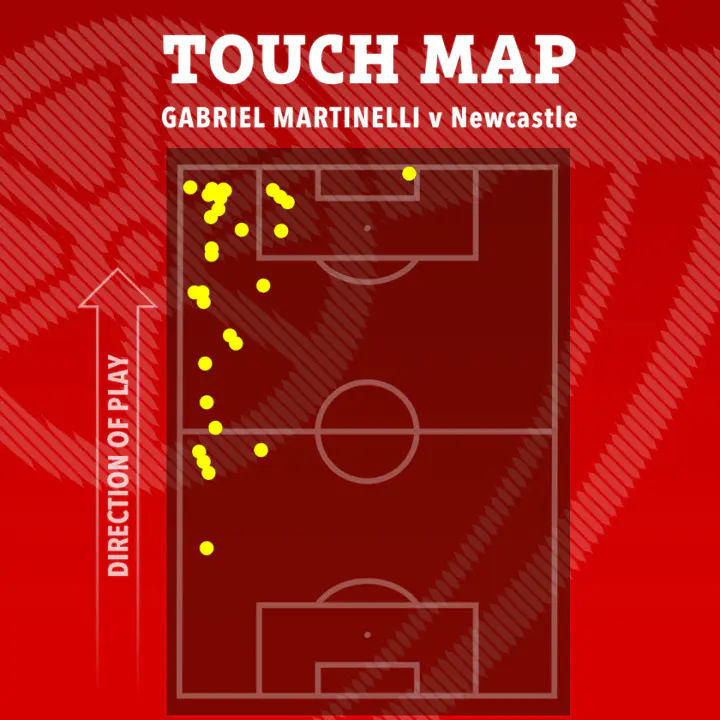 This massively impacted Martinelli's ability to pose a threat, as he did not provide a single accurate cross or shot on target before he was subbed.