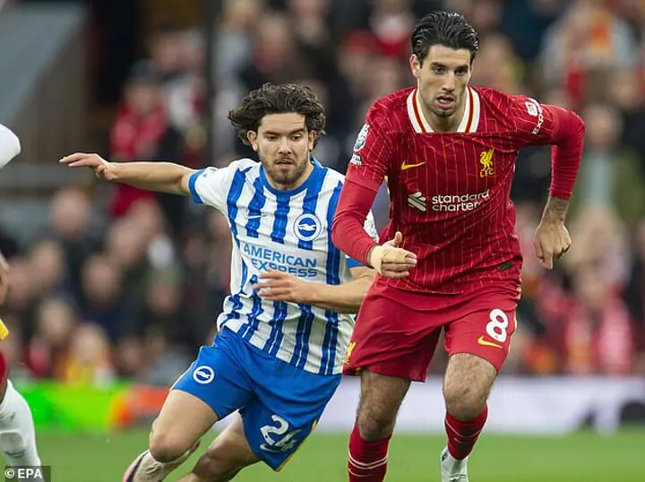 Dominated by the Brighton midfield in the first half with Jack Hinshelwood and Yasin Ayari a step ahead of him. Much more aggression and intent in the second half before he was taken off for Luis Diaz as Liverpool hunted an equaliser.
