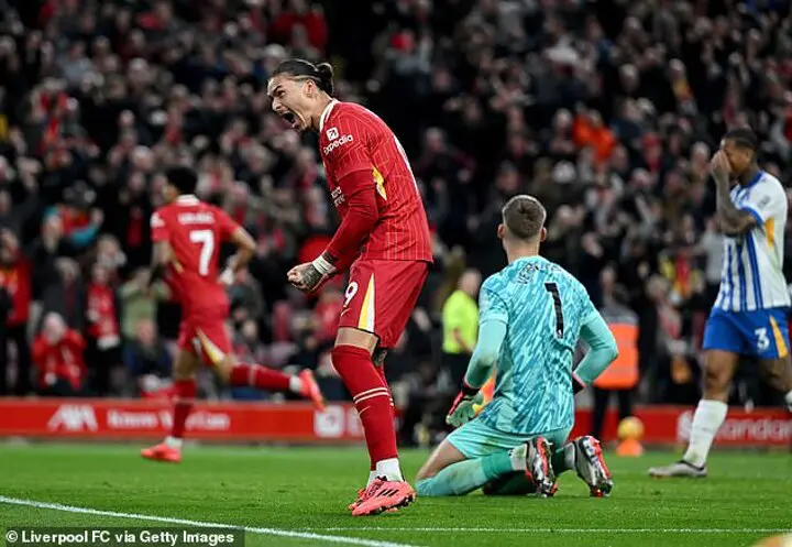 A superb shift, again. Did brilliant early on with a run from the centre of the pitch before his effort was tipped away by Verbruggen and constantly caused problems for Brighton. Taken off for Wataru Endo in the 77th minute as Arne Slot looked to see the game out.